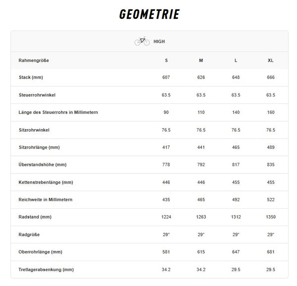 - Steuerrohrwinkel: 63.5 degrees